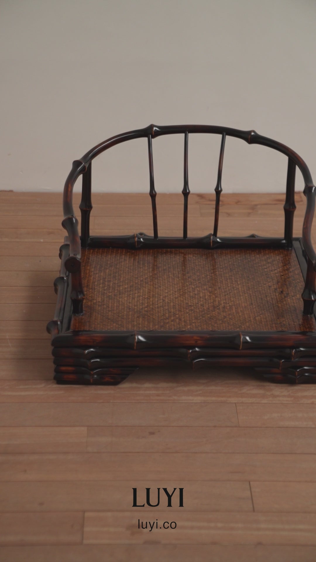 Crafted from Qiong bamboo, a rare, high-altitude species from the Yunnan Plateau, the chair features a handwoven bamboo-split surface and wooden panels, joined using traditional mortise-and-tenon techniques for a strong, nail-free structure. A hand-applied lacquer finish adds durability and a subtle, refined sheen.