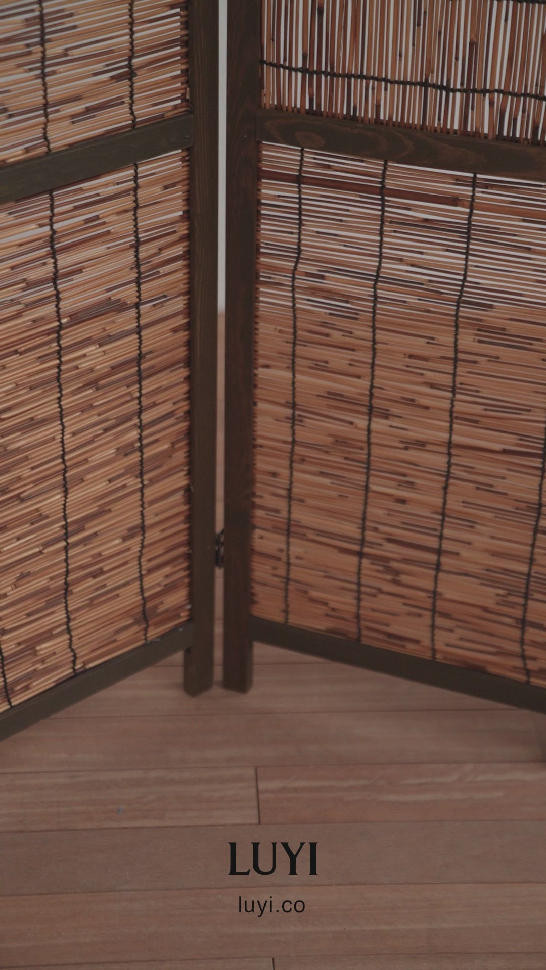 The reed folding screen features responsibly sourced larch wood frames and a screen panel hand-woven from natural reeds. Each reed varies in color and size, making every screen a unique piece. The gap between reeds makes it semi-translucent, allowing light to come through. The carefully crafted natural materials bring a sense of calm and warmth to your home. The metal hinges allow for easy movement and storage. It comes with complimentary footing bases, enabling the screen to stand straightened.