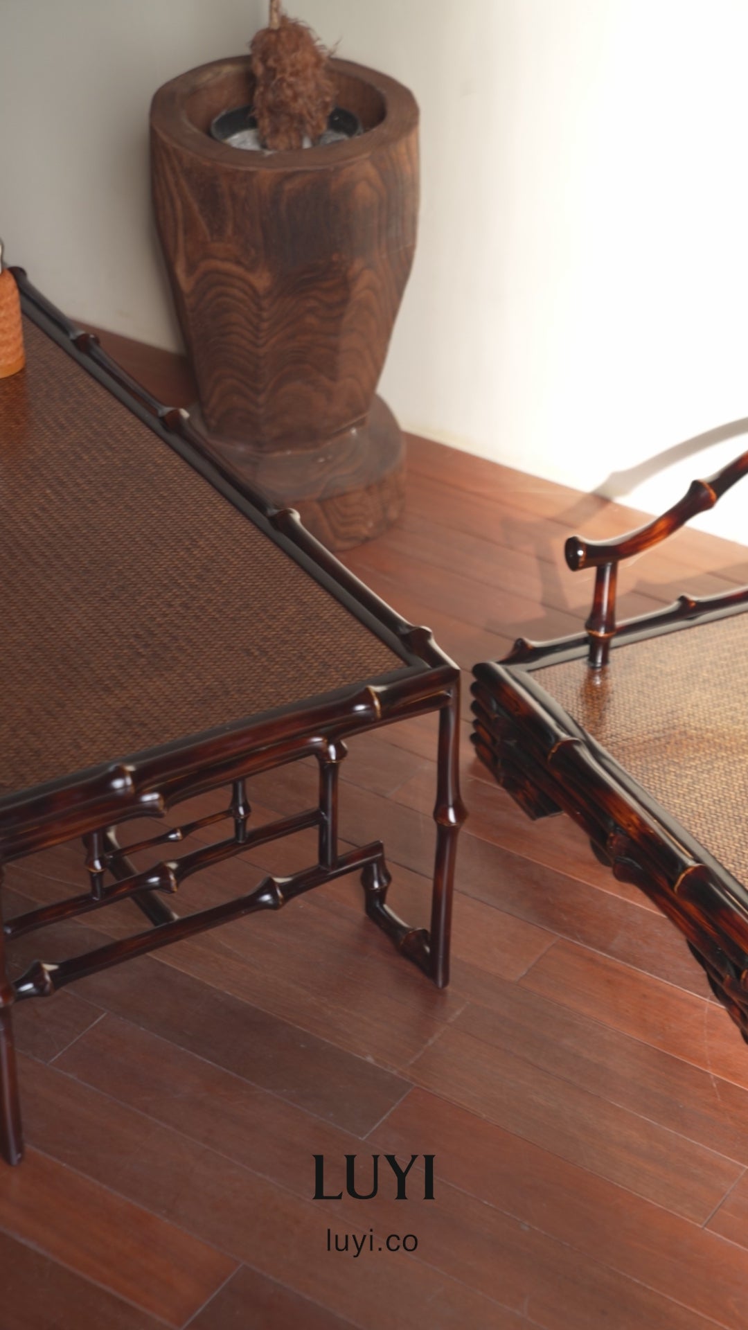 The Song Low Tatami Table embodies the simple and slender aesthetics of the Song Dynasty. Crafted from Qiong bamboo, a rare, high-altitude species from the Yunnan Plateau, the table features a handwoven bamboo-split surface and wooden panels, joined using traditional mortise-and-tenon techniques for a strong, nail-free structure. A hand-applied lacquer finish adds durability and a subtle, refined sheen.